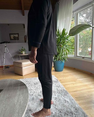 [This review was collected as part of a promotion.] The pants fit quite nicely. My husband is wearing an XL which he normally wears, but this runs slightly larger so I could have sized down one size for a more fitted look. He loved the fabric and said it was very soft and comfortable. This outfit will come in handy during the long winter months ahead. I received an incentive to write this review.