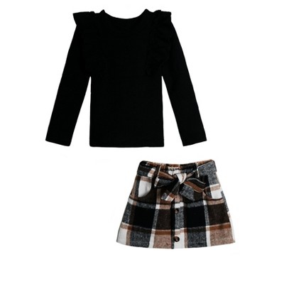 Rust Turtleneck Top and Plaid Skort Set Mia Belle Girls