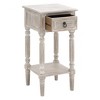 - •Farmhouse side table has a drawer with round ring handle, a shelf at the base that adds extra storage and organization