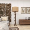 Sometimes Mother Nature inspires the best home decor ideas. Build on a natural decorating theme with this driftwood floor lamp. Made in the Philippines, the decor’s body brings together a collection of beige branches to create a 59” lamp post. The lamp is topped with a matching drum shade that ensures the room is illuminated by soft glow. Uses a E26 bulb (not included). The floor lamp comes with a 91" cord. Suitable for indoor use only. The wood floor lamp is topped with a fabric drum shade. This table lamp powers via a foot switch on its cord. Rustic theme. This item comes shipped in one carton.