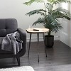 - •Rustic wooden end table features a slice of tree trunk tabletop and tapered metal tripod legs
