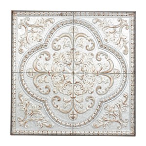 Olivia & May Rustic Metal Scroll Wall Decor with Embossed Details Light Gray : Iron Crafted, Indoor Vertical Display