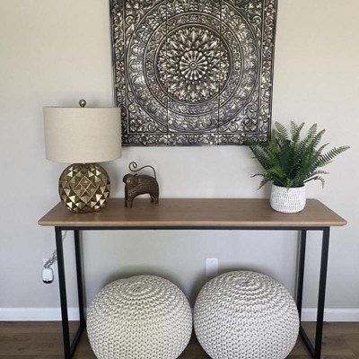 LOVE this. It’s beautiful and lightweight so very easy to hang. Really makes a statement without being obnoxious like some large artwork/decor can be. Quality piece and arrived well packaged and undamaged. I’d highly recommend. The console table and poufs are also from Target and I’d recommend those as well. I did get the poufs at the store vs ordering online to be shipped so I saw they were round and not stained or dirty. The table is sturdy and nice although difficult to put together alone but I got it done.