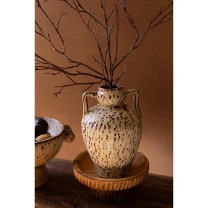 Add a touch of rustic sophistication to your decor with this ceramic urn featuring two handles and a beautifully distressed, speckled finish. Measuring 6.5x10 inches, it’s perfectly sized for displaying dried fronds, faux florals, or seasonal branches. The textured ceramic design adds depth and artisanal appeal, while rubber feet protect surfaces and provide stability. Ideal for use in entryways, offices, or living spaces, this versatile urn enhances both farmhouse and transitional decor styles. Whether displayed on its own or grouped with coordinating pieces, it offers an elegant, earthy accent that complements any setting.