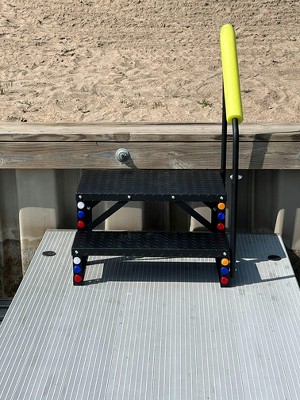 It's a little tricky to put together but we (two of us) managed. As we were putting it together the handrail was in the sun and became rather hot. So before we added hand rail we threaded a yellow pool noodle on the handle. We also added little reflectors on the risers beside the steps. We put it on our dock to assist going from dock to top of seawall. This will help us be safe! Also Garvee customer service was quite responsive via email. Thanks, Garvee.
