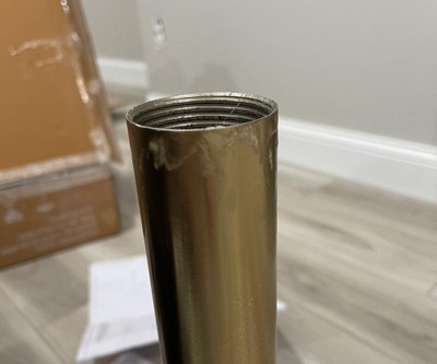 The base came scratched and covered in a red dust. There was oil all over the middle section as well. Very messy assembly! Not worth the price paid!