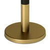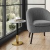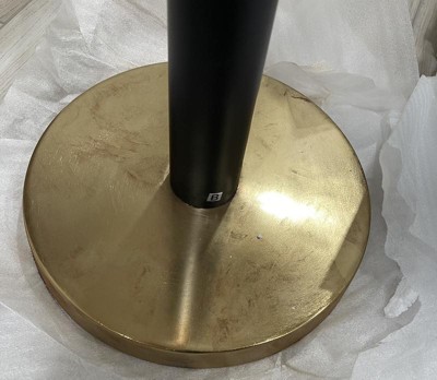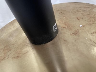 - Featues a round marble table top complemented by black and gold metal pedestal base