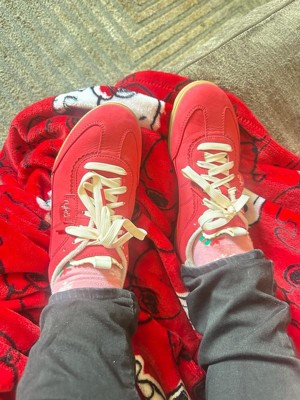 [This review was collected as part of a promotion.] I received these shoes in exchange for an honest review. These shoes are so cute and comfortable. They offer great support for walking around and they are very high quality. I chased my toddler around all day and no complaints. Also LOVE that the business is woman-owned. The red is very vibrant and the material is soft suede but I didn’t notice any wear and tear after having them on and wearing outside a couple of times. The shoes did run a little big, I ordered up because I was not familiar with the sizing. If you’re between sizes, I would suggest going down a half size.