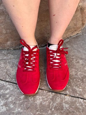 [This review was collected as part of a promotion.] I felt like having a pop of color in my wardrobe! The red is so vibrant. I wore this out on a walk and loved the comfort that the arch support provides. I like the fit of these sneakers it looks slim on my feet while not being tight. It seems very well designed and made and I can tell it will last a long time. I’d definitely consider more from this brand. It’s also very stylish.