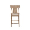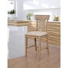 A: Tuesday, Thank you for your interest in the Rylan Counter Stool. The white finish is painted white washed style. The upholstered seat is in a beige polyester fabric and is easy to maintain.