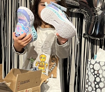 • A: Yes, it has a light-up midsole that blinks with every step, adding fun.