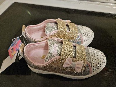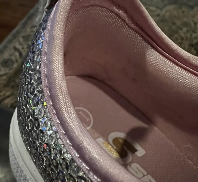 • Rhinestone embellished toe with fun lights that blink with every step