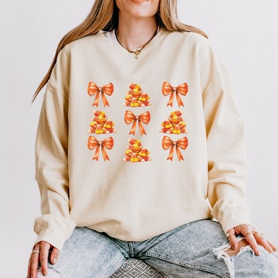 Get into the spirit of Halloween with this playful and charming print featuring a smiley face filled with candy corn. Perfect for adding a touch of whimsy and fun to your wardrobe. The vibrant colors and cute design are sure to bring a smile to anyone's face. Whether you're trick-or-treating or just feeling festive, this design is a sweet way to celebrate the season.