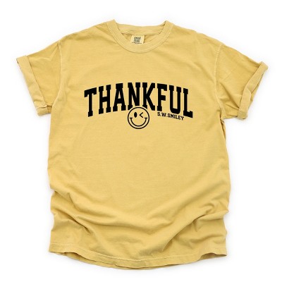Product Name: S.W.Smiley Thankful Cursive - Women's Garment Dyed Graphic T-Shirt