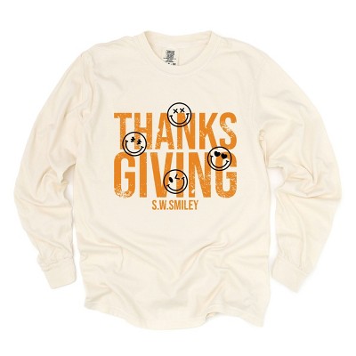 Product Name: S.W.Smiley Thankful Varsity Arched - Women's Garment Dyed Long Sleeve Graphic T-Shirt