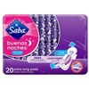Saba® Buenas Noches™ Maxi offers overnight protection so you can sleep comfortably and live every day to the fullest. It has Triple Protection Technology (absorbs, distributes, and protects), fast absorption, anti-leak barriers, and an anatomical super absorbent center. It is the only one with SecureFit™ Technology, with a different shape front and back that molds perfectly to your body. 20 pads per package.