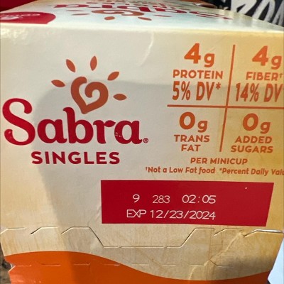 Savor the simply delicious taste of Sabra Classic Hummus Singles. Each 2-ounce single-serve container is perfect for on-the-go snacking. Sabra is the hummus that brings you back to the basics—eating with your hands, talking face to face and sharing your day. This recipe is a classic—chickpeas (also known as garbanzo beans), creamy tahini and a touch of garlic. The flavor is smooth, tasty and satisfying. Enjoy some vegetable dip at school. Savor a single-serve container with chips at the office. Or pack them as gluten free snacks on the go. Sabra hummus brings people together. This vegan dip is gluten free, certified kosher and Non-GMO Project Verified. Sabra Classic Hummus spread is made with chickpeas grown by family farmers in the Pacific Northwest and blended with ingredients from around the world. With Sabra Classic Hummus, it’s all about doing what tastes good.