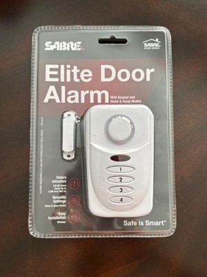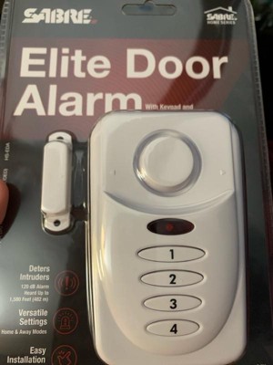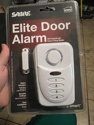 A burglary occurs every 14.5 seconds in the U.S., and budget cuts have led to an average 911 response time of 10 minutes. The SABRE Elite Door Alarm helps secure homes, apartments, offices, commercial space, garages and sheds at an affordable price. This alarm has a 120 dB alarm that sounds whenever doors or windows are opened, alerting you and your family of an intruder. It can be heard up to 1,500-feet away (457-meters), helping to get neighbors' attention in an emergency. The Elite Door Alarm is secured a by a 4-digit PIN code of your choosing with an entry/exit delay setting - no key fob required. It features 4 adjustable settings: (chime/home/away/panic). Chime mode is ideal for alerting you when children and guests are coming and going when you are at home. The alarm will sound immediately when triggered during Home mode. Away mode allows for entry and exit delays while panic mode will sound the alarm with the key combination. Easy to set up, the alarm is wireless and works on both left and right side opening doors. It requires 3xAAA batteries and provides a battery status update with a low battery indicator. This consumer preferred, aesthetically pleasing, premium white alarm looks great anywhere in your home.