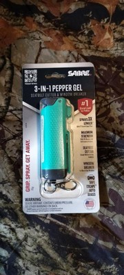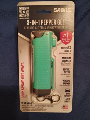 [This review was collected as part of a promotion.] This Sabre 3 in 1 pepper gel sprayer, seatbelt cutter and window breaker is great. I feel a bit safer having this in my car and diaper bag when out shopping with my baby alone. It gives a peace mind knowing if I'm in danger I can easily use the pepper spray. It's nice that it includes the seatbelt cutter and window breaker.