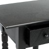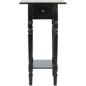 Highlighting the best of country chic decor, this Sabrina End Table is the ideal small space solution. Sabrina's classic carved details shine through a pine wood construction in a distressed black finish, complementing any room's color scheme with ease and style.