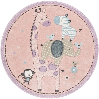Safavieh Kids SFK351 Hand Tufted Indoor Area Rug - Ivory/Pink - 4' Round - Safavieh