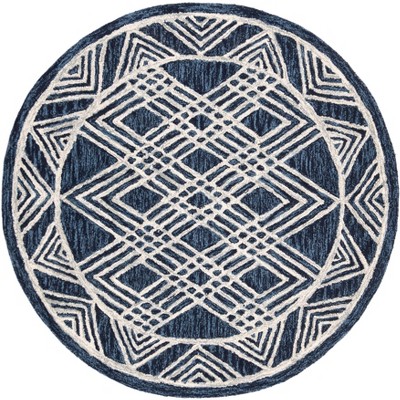 Safavieh Kids Zigzag SFK907 Hand Tufted Indoor Area Rug - Navy/Ivory - 5' Round - Safavieh