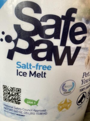 [This review was collected as part of a promotion.] Safe Paw Pet Friendly Concrete Safe Salt Free Ice Melt Pellets, 35 Pound Pail The Original and number 1 Child and Pet Safe Ice Melt is 100-percent salt and chloride-free ice melt, non-corrosive to all metals, and non-conductive and will not short out circuits. Safe For children and pets. Easy to use as you need not use a heavy dose of this product and the green tinted color allows you to see where your placing the product together with the amazing amount in order to be effective. The very awesome effect of how it begins to work will certainly be beneficial. Please know this is the snow melting product you will be happy with all the results.