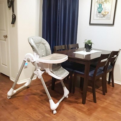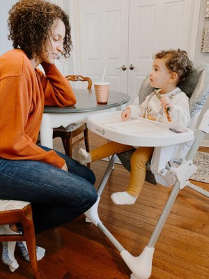 Kitchen cleanup can be exhausting, but you can take comfort in knowing that the insert tray is dishwasher safe and the seat cover comes off for an easy wipe down. If you need to free up some space, you can easily roll the high chair out of the way and store it upright. Enjoy meals together while your baby or toddler sits comfortably at the table, as you sit sporting a fancy spaghetti wig.