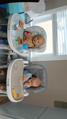 We have been using this high chair for a month now. We love the adjustable height & reclining settings. The top makes it so we have easy clean ups because it is removable. We like that you can wipe down the chair without tossing in the wash.