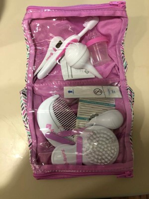 This grooming kit is great for little ones. The brush is soft on babies head and I love the medicine cup with the bottle nipple on top. Cute design also!