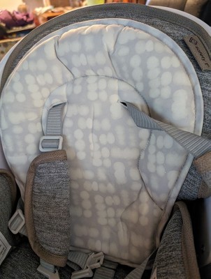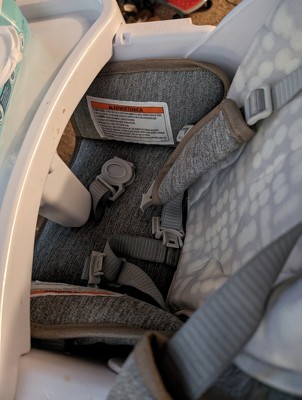I wanted to love this seat (it matches my home), however I can’t keep it, the harness straps are “adjustable” however even when fully extended are too tight on my 8m baby !! I’ve tried moving the straps around and still not enough slack for my babes waste, she’s only 20lbs will be returning for another seat, easy to assemble (some pieces need storage when not in toddler modes
