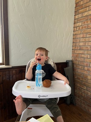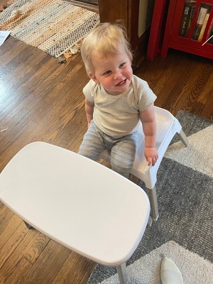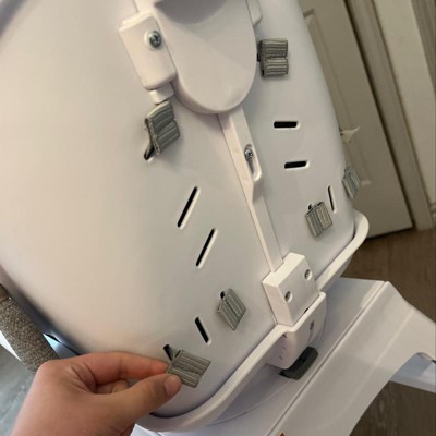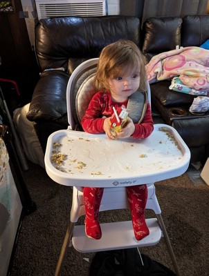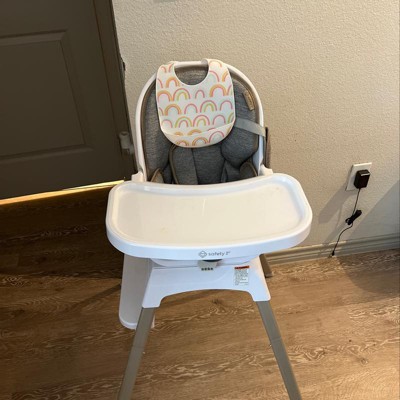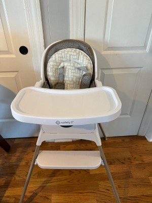 As a parent of 7 kids I have used a variety of types of high chairs. This high chair has quite a few pros and some cons. PROS: 1) VERY easy to clean and keep clean (which is hard to achieve with toddlers eating finger food!) 2) easy to put together out of the box, even without instructions 3) multiple use from stool to high chair making it useful for a long time 4) lightweight and easy to move 5) modern, sleek design (very minimalist) 6) the tray insert covers the ENTIRE tray service which contains messes better than other models and it's very easy to clean (also not easy for baby to detach themselves!) 7) the grey model is very sleek and blends with house decor very well 8) it easily converts for multiple uses without requiring extra parts 9) the seat recline is awesome so you can use it multiple ages and purposes CONS 1) THE BIGGEST PROBLEM - there is no way to verify the tray is secure and my toddler pushed it off multiple times and would have fallen if she wasn't strapped in! The clasps don't click loudly, there is no place to check placement is secure, and it slips out of place often. This was a deal breaker for me - safety is top priority. 2) the tray area is very small, making it easy to cups/items to fall or be tossed off 3) the legs are wide spread which takes up considerable floor space (and even in the stool mode, it's hard to put under a table) 4) the very lightweight design doesn't feel particularly sturdy over all 5) there is no where to store the tray when taking baby in/out and since it doesn't sit flat (bc of the leg divider), it's annoying to hold or place down - it would be nice if there was a hook on the back or the side to hang the tray when not in use. Overall this is a great budget buy option - it has lots of features that make very versatile and useful but you have be extra vigilant that things are safely secured, which is annoying at best and hazardous at worst. Thanks Stellar Product Panel for letting us test out this high chair!