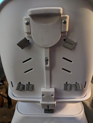 High chair modes: Seat rotates 360° (in an upright position), infant mode with 3 recline positions, and toddler mode (0–3 yrs; up to 40 lbs.). It can be used as a booster in infant mode and toddler mode (with no tray) (6 mo–5 yrs; up to 50 lbs.). To accommodate your toddler’s growing legs, the high chair has a 2-position adjustable footrest.