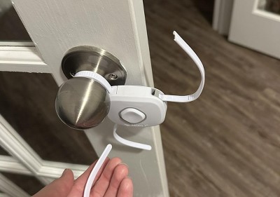 Do not purchase this. I’ve bought 2. I had it on French doors together keep the dogs from leaving the room while I work out. The first one was great, until my dog broke it somehow. So, I bought another one. I put it on the doors before my workout. Then I tried to leave the room and was stuck. Like stuck stuck. I figured I was just at a weird angle. Nope! I’d opened the previous one dozens of times, so I knew I was doing it correctly. Naturally, I call my fire fighter husband. He’s at work an hour away and suggested I call the fire dept to bust me out. I was absolutely not doing that. I could imagine the “pregnant lady’s firefighter husband told her to call 911 to reduce her from a baby lock” jokes, yeah, no. Luckily one of said dogs has insanely long hair and I was able to use his grooming scissors to free myself, 3 dogs, and my phone on 7% battery. Needless to say, I will not be using this brand for my future baby proofing needs.
