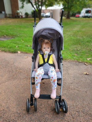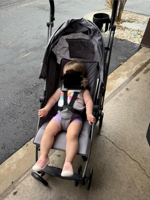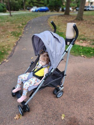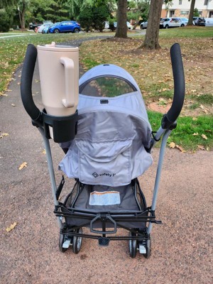 - Huge cup holder attaches to the inner side of either handle to minimize the width of the stroller