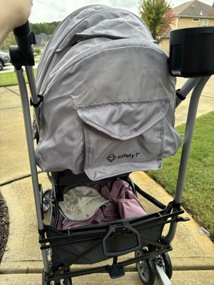 With the extra-large canopy, your child will sit comfortably in the shade even on sunny days. The peek-a-boo window lets you quickly look in and exchange a smile or two. There’s plenty of room in the storage basket for diapers, extra clothes, and everything you need along the way. You can also store small personal items in the covered pocket attached to the back of the seat.