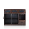 Keep your kitchen and dining space arranged for easy organization at all times with this transitional wood buffet in vintage walnut. A pair of cabinet doors open to unveil plenty of space for storage items on the interior shelves while offering multiple pull-down cabinets for miscellaneous items. Unique chalkboard front panels on the pull-down cabinets offer a simple way to label what goes where for easy discovery. A suspended stemware rack and drawer in the lower corner complete the storage options of this piece, which is crafted of particle board, MDF, and metal.