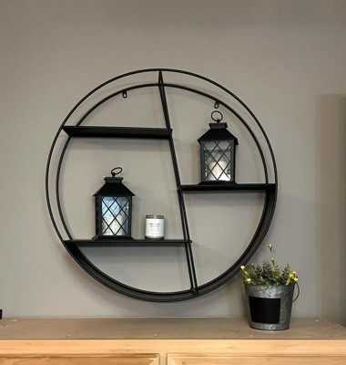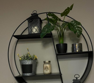 Sagebrook Home 32" Round Black Shelf - 4 Layered Contemporary Floating Metal Wall Shelf for Creative Home, Office, Bathroom