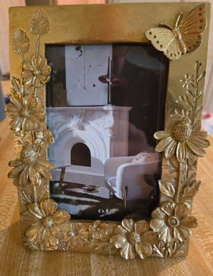 Sagebrook Home Boho Gold Picture Frame - Floral Butterfly Design - Resin & Glass - Vintage Photo Frame for Home, Office, Bedroom - 8" Metallic Gold
