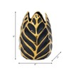 This decorative vase features a striking black and gold finish with an intricate leaf-inspired design that adds a touch of modern elegance to any space. Crafted from high-quality ceramic, this vase is both durable and stylish, making it a perfect addition to your home decor measuring 6x6x8 inches. The sculptural cutout pattern creates visual interest, enhancing the charm of this piece whether displayed as a standalone decor item or filled with fresh or artificial flowers. The glossy black base accented with metallic gold detailing offers a luxurious feel, effortlessly complementing various interior styles, from contemporary to classic. Its compact size makes it ideal for placement on coffee tables, bookshelves, mantels, or office desks, adding a refined touch to living rooms, bedrooms, entryways, or workspaces. With its artistic appeal and premium construction, this vase makes a thoughtful gift for housewarmings, birthdays, or special occasions. Elevate your home decor with this uniquely designed ceramic vase, a stunning fusion of sophistication and modern craftsmanship.