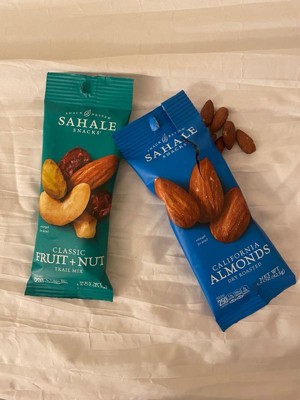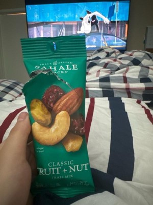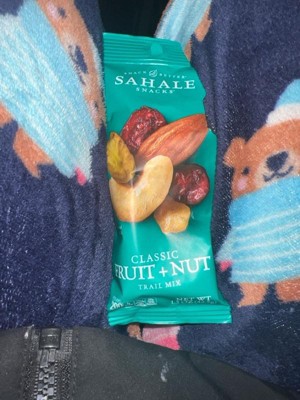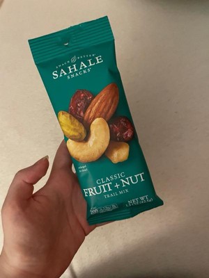 Discover the perfect blend of fruits and nuts with Sahale Snacks Classic Fruit & Nut Trail Mix. This case includes nine 1.5 oz bags of this classic and satisfying snack. Enjoy the combination of crunchy nuts and delicious dried fruits. Each bite offers a delightful balance of sweet and nutty flavors. Made with premium ingredients, this trail mix is a wholesome source of protein, fiber, and essential nutrients. Enjoy the Classic Fruit & Nut Trail Mix as a convenient and delicious snack on-the-go or as a tasty addition to your favorite recipes. With this case, you'll have plenty of this classic trail mix to fuel your adventures and satisfy your cravings.