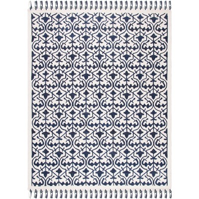 The Sahara Collection showcases the trendy new look in boho-mod area rugs. A subtle etched pile accentuates nomadic patterns for dimension-rich textures and soft, plush comfort underfoot. Sahara is hand-tufted with long tasseled fringes lending a homespun finish steeped in craft art style. Care Instructions: Vacuum Without Beater Bar