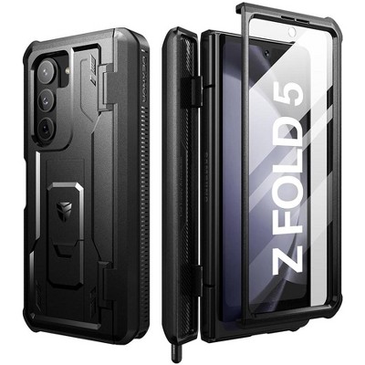 Fortify your Samsung Galaxy Z Fold5 with protection against drops and impacts, courtesy of this SaharaCase GRIP Series full-body case with kickstand and stylus compatibility. Its smooth surface exudes elegance, complemented by an ergonomic anti-slip grip, ensuring a secure hold in your hand. The closed-button design seamlessly integrates with your device, maintaining its sleek appearance.