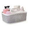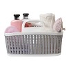 Bath Bliss' Sailor Knot Bath Tote has a unique design made of sturdy polypropylene plastic with space for all of your bath accessories. One sturdy handle makes it easy to carry tote around from one place to another. It has a lightweight design and holds a multitude of items, organizing and de-cluttering bathrooms and dorms.
