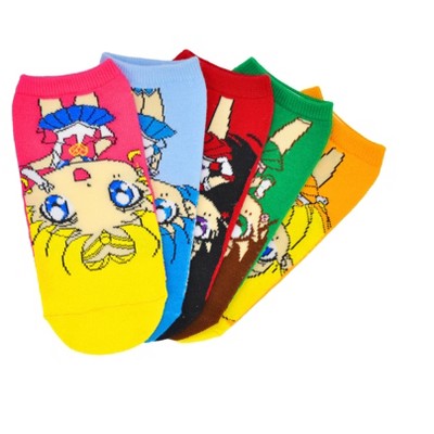 This officially licensed 5 pair pack of Sailor Moon lowcut socks feature Sailor Moon, Sailor Mercury, Sailor Jupiter, Sailor Venus and Sailor Mars, along with their corresponding astronomical symbols.