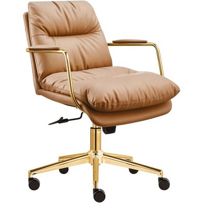 - Modern Aesthetics, Thoughtful Details: Dual-layer seat cushion prevents leg numbness during extended use; 4" thick down-alternative padding delivers cloud-like softness; sleek gold finish complements contemporary office decor, blending style with functionality.