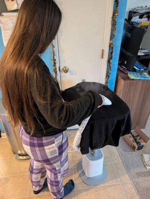 [This review was collected as part of a promotion.] Wow!! I’ve never had a clothes steamer before but this is incredible. I am horrible at ironing and also too lazy to do it. I’m a serial let me just put it in the dryer to dewrinkle… well now getting ready for work sometimes that just doesn’t happen. Having this in my room is a breeze. It heats up so quickly and it works so fast. It’s very hard to get the steam wand out of place if you aren’t trying. I love that to keep my kids safe. I can’t wait to now go around and steam my wrinkled curtains and everything else.