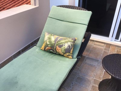 Beautiful bright color! Length good for resort chairs. A little thin, it I put it on top of other cushions I had on the lounger.