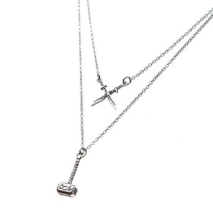 - Necklace features three chains and charms: Thor's hammer, as well as his gladiator helmet and swords!