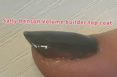I bought the super volume builder top coat and just wanted to give it a try, a builder effect or hoping it would be similar to a builder gel effect I get in the salon. It didnt disappoint, it smoothes one of my uneven nail surface out. Dry time is kinda slow though, it probably takes 40 mins to fully dry out.